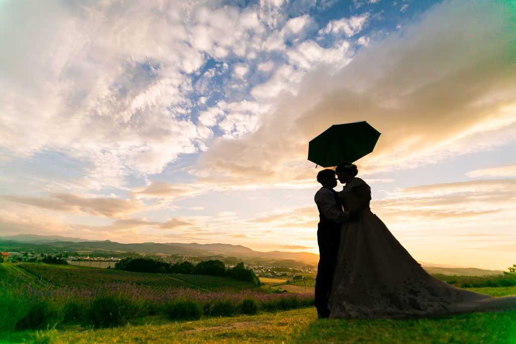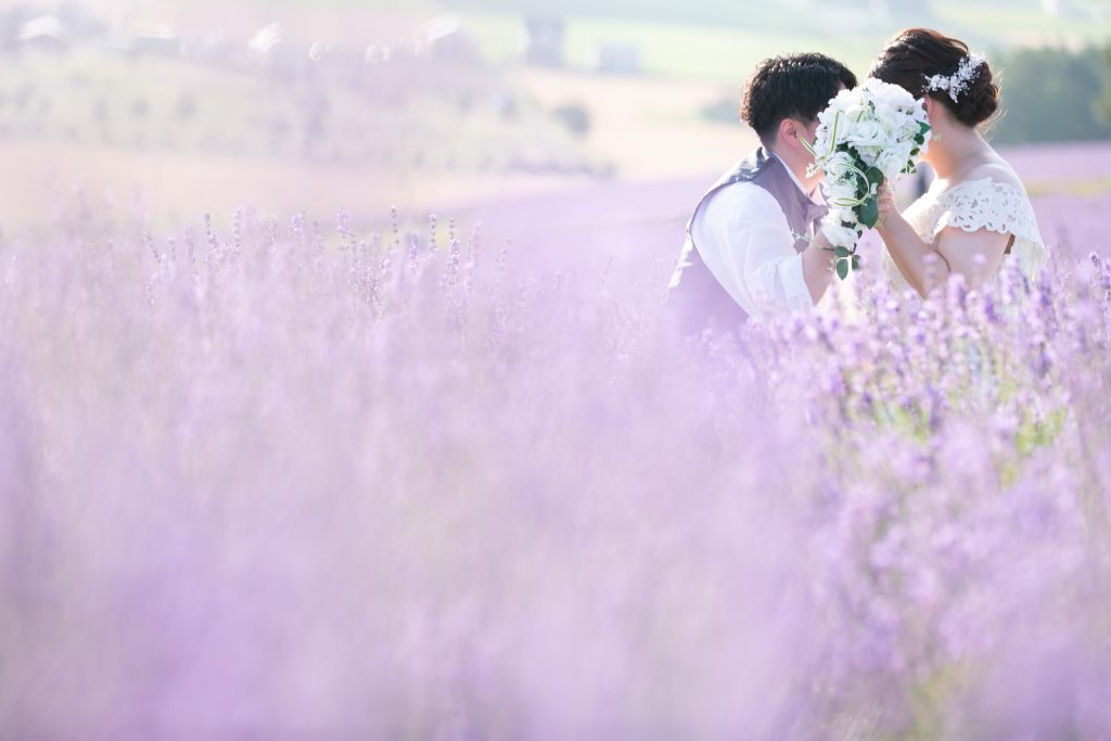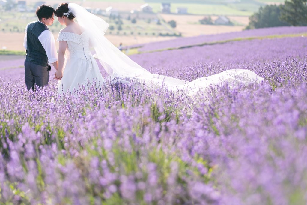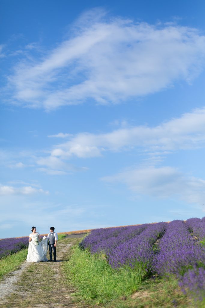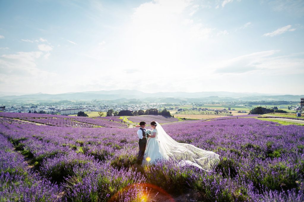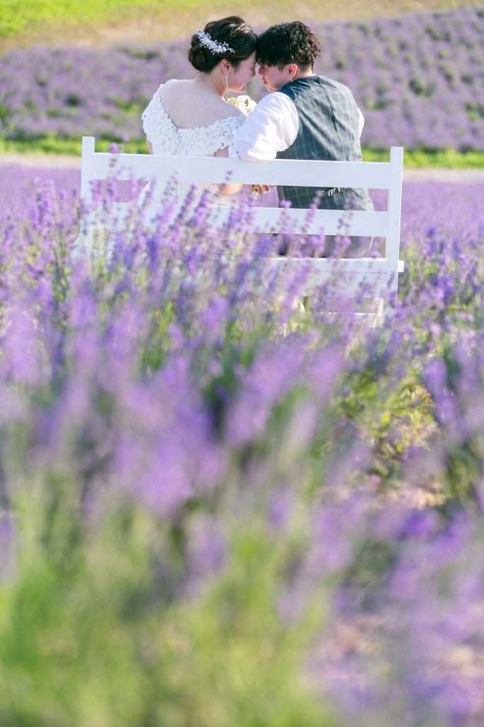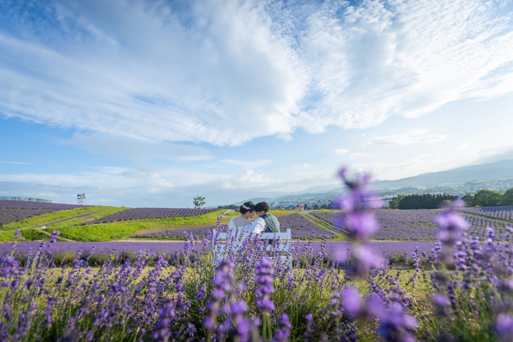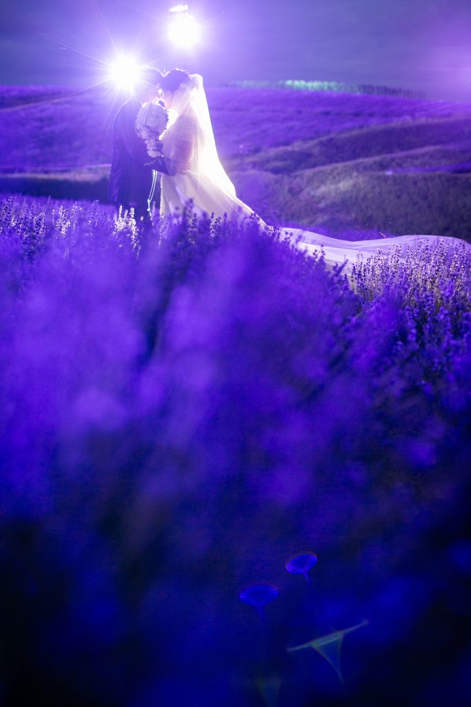 お花が好きだったこともありSNSで探していたところ、北海道の広大な土地でラベンダーに囲まれて撮影をしたいと思いそこをこだわって探しました。また、ライトアップ撮影に惹かれたのも一つで、とにかく富良野の日の出公園で撮影したかったという気持ちがありこだわって選びました。