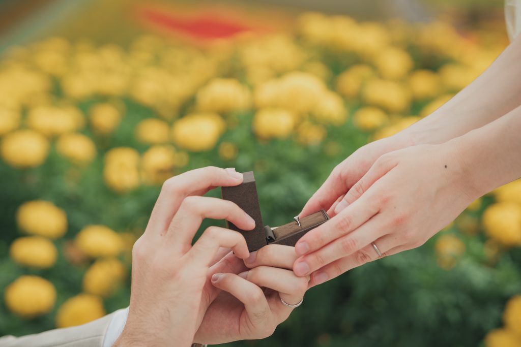 婚約指輪は「プロポーズ風ショット」でも撮影できます。