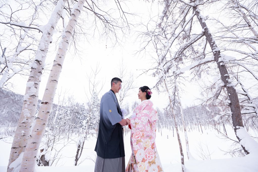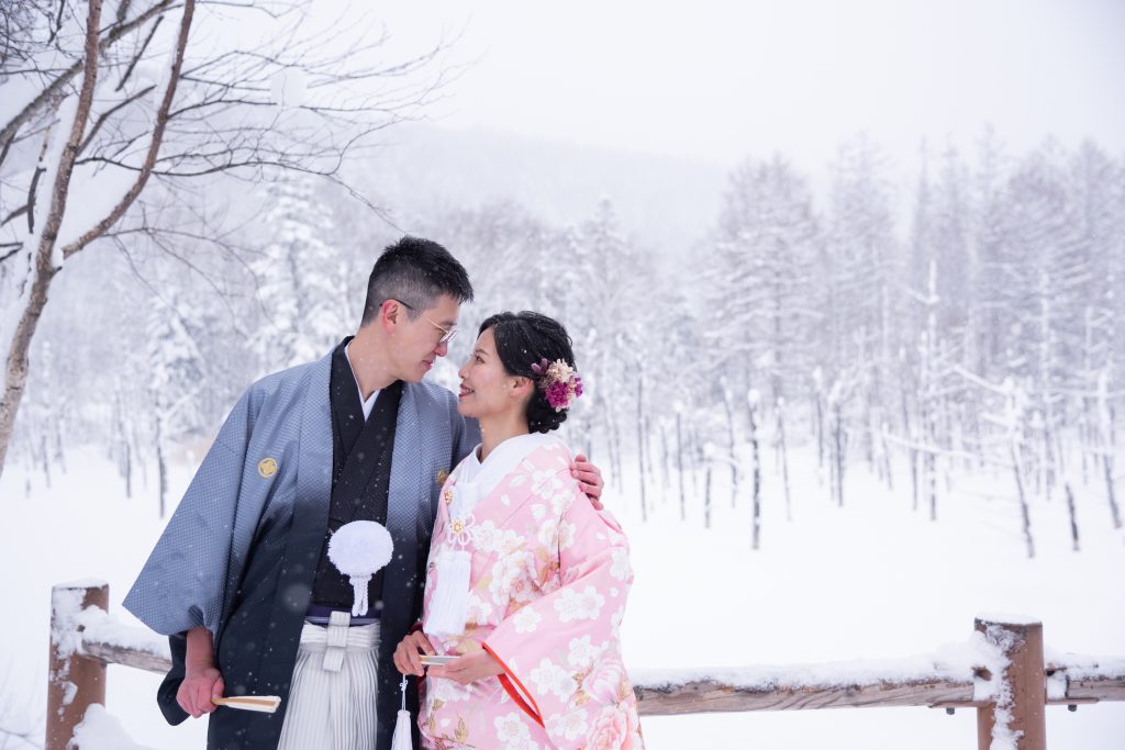 北海道の大雪山系を望む、雪原でのロケーションフォト「SNOW WEDD...